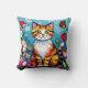 Cat themed throw pillow. A cute orange cat sitting in flowers and surrounded by butterflies. The art is in an impasto oil paper quilling style.