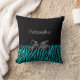 Um travesseiro bonito e na moda do impressão da zebra com as listras modernas da zebra do preto e da cerceta e embellished com uma fita preta feminino impressa. Personalize adicionando seu nome a este design chique das mulheres do preto e da turquesa. Aperfeiçoe para o fashionista à moda em toda a menina adolescente!