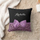 Um travesseiro decorativo quadrado impressão aguar púrpura, chic e na moda, com uma fita roxa giro-clara amarrada em um arco bonito. Personalize este design de impressão de animais modernos adicionando o nome de qualquer garota adolescente. Imagem impressa plana, não arco real.