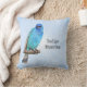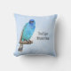 Imagem de um pássaro Indígo Bunting com seu nome em um fundo azul claro