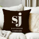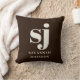 Almofada Iniciais de monograma castanho de fazenda elegante