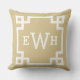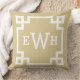 design na moda e travesseiro de sotaque quadrado moderno apresentam um design e um monograma de quadros geométricos de borda grego que podem ser personalizados. Cor neutra, castanha e branca. A cor de fundo pode ser modificada.