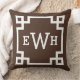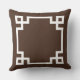 design na moda e travesseiro de sotaque quadrado moderno apresentam um design e um monograma de quadros geométricos de borda grego que podem ser personalizados. Cor espresso escura e branca. A cor de fundo pode ser modificada.