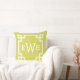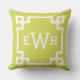 design na moda e travesseiro de sotaque quadrado moderno apresentam um design e um monograma de quadros geométricos de borda grego que podem ser personalizados. Cor amarelo/verde e branca. A cor de fundo pode ser modificada.