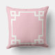 design na moda e travesseiro de sotaque quadrado moderno apresentam um design e um monograma de quadros geométricos de borda grego que podem ser personalizados. Rosas claro e cores brancas. A cor de fundo pode ser modificada.