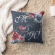Almofada Iniciais de Monograma Rosa Azul Azul Floral Escuro