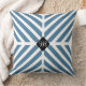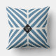 Almofada Inicial de Monograma de Listras Diagonais Azuis Mo