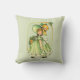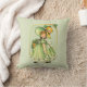 Menina irlandesa fofa ou Colleen com chapéu bonito e cesto de camarão sobre fundo pastel. Este design de colheita foi cuidadosamente restaurado à mão. Fundo de banda monocromática verde pastel claro.