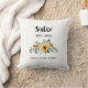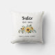 Este travesseiro bonito feito especialmente para sua irmã apresenta uma elegante tipografia de roteiro, e um buquê floral na moda de girassóis amarelos ouros com folhas verdes bonito. Adicione o ano em que ela se tornou irmã, e todos os nomes dos irmãos por um belo tesouro. A parte de trás do travesseiro tem um padrão de girassol equivalente.