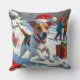 Almofada Jack Russell correndo em neve com chapéu de Natal