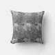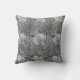 Art Nouveau, travesseiro decorativo jacobã de cor damasco estilizada, rolada, de folhas e flores, baseada num vintage William Morris, melhorado digitalmente e colorido em prata claro para cinzas de grafite profundas, acentuado com flores brancas