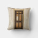 ALMOFADA JANELA DE MADEIRA ROWN NA PAREDE DE CONCRETO BRANC