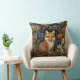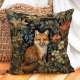 Este travesseiro requintado apresenta um design caprichoso que traz uma raposa encantadora em meio a uma floresta exuberante, cercada por folhas botânicas intrincadas e flores art nouveau delicadas.