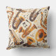 Mostre seu amor pela música com este travesseiro na moda, apresentando um saxofone vibrante, trompete e padrão de notas musicais em um fundo bege. Perfeito para decoração em casa ou como presente para amantes de música!