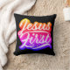 Que lembrete para todos que o veem e leem - Jesus deveria ser o primeiro e o primeiro na vida de um cristão! O design propriamente dito estará disponível em algumas cores diferentes para escolher. Este travesseiro vem em diferentes tecidos e tamanhos.