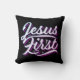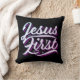 Que lembrete para todos que o veem e leem - Jesus deveria ser o primeiro e o primeiro na vida de um cristão! O design propriamente dito estará disponível em algumas cores diferentes para escolher. Este travesseiro vem em diferentes tecidos e tamanhos.