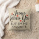 Jesus te ama, mas eu sou o favorito dele. Christian Humor Dizendo. Slogan Religioso Engraçado. Com pequenos corações vermelhos.