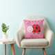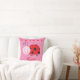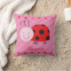 O travesseiro personalizado que caracteriza um joaninha vermelho com as flores vermelhas bonitas e o rosa listra o fundo. Design bonito e do divertimento para o special para meninas. Presente conhecido customizável.