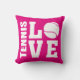Almofada cor-de-rosa com Tênis de TÊNIS. Os jogadores de tênis adorarão esta almofada de Tênis confortável! Esta almofada de Tênis tem um tema Amor com as palavras TÊNIS e AMOR em letras brancas em negrito. Uma bola de tênis serve para a letra O dando a este design um tema de tênis. Na parte de trás desta almofada está o mesmo Tênis Love design, mas impresso como um fantástico por todo o impressão. Esta almofada confortável parece excelente em qualquer cadeira e mostrará a todos que você tem um amor ardente por Tênis. Mais presentes e mercadorias de temas Tênis disponíveis na loja STAND UP AND CHEER!