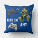 Um Jogo Azul No Travesseiro decorativo Grande Do Jogador Projetado Com Dois Controladores E Quatro Robôs De Perna Que Você Pode Personalizar
