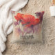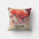 Um belo travesseiro decorativo cristão com uma escritura de citação inspiradora retrata um simples e elegante design de arte floral de aquarela com duas flores vermelhas e um abstrato de fundo roxo. Apresenta uma Bíblia encorajadora Verse John 15:12, nas palavras de Jesus, "Ame-se uns aos outros como te amei."
