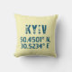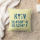 design de travesseiro decorativo com as coordenadas latitude e longitude de Kiev, Ucrânia com uma fonte azul escura e angustiada.
