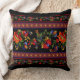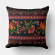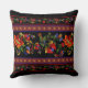 travesseiro decorativo de 20" x 20" com uma imagem de um belo design floral ucraniano a preto. Preto para trás. Veja toda a coleção de Travesseiros Flores e Plantas na seção HOME.