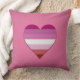 Travesseiro decorativo com a imagem de um coração nas cores da bandeira do orgulho lésbico, em um fundo rosa. Veja na minha loja mais produtos com temas LGBTQ!
