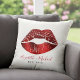 Esta almofada ostenta um visual gráfico ousado de uma impressão de lábios vermelhos gigante em imitação de folha de alumínio contra um fundo branco limpo, juntamente com os nomes do casal feliz e a data estabelecida. Lascas de imitação de brilho vermelho estão na parte de trás. Espalhe amor e alegria sempre que relaxar nesta almofada arrojada, colorida, elegante e moderna. Este é um ótimo presente para o Dia dos Namorados, aniversários, aniversários de casamento, noivados ou para um presente de "Eu te amo" a qualquer momento. Crie isso para alguém especial!