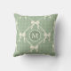 Almofada de Arremesso Laços Coquette Xadrez Monograma Creme Verde Sage para um visual moderno e limpo. Estilo country elegante e chique neste design de padrão único de laços coloridos de creme e linhas com padrão de diamante em aquarela. Altere o monograma para a inicial de sua escolha.