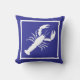 Lagosta branca num travesseiro azul marinho para uma casa de Verão ou de praia ou qualquer lugar com um tema náutico