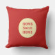 Círculo bege de areia e texto: Lar Doce Lar em Vermelho Marrom Almofada de Arremesso.