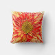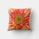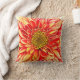 Travesseiro decorativo em uma gigantesca imagem de uma flor de páscoa, em tons de laranja, com um centro ouro amarelo