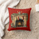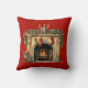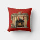 Um travesseiro com uma ilustração calorosa e acolhedora com uma lareira antiquada. Parar com cuidado. Garland pendurada sobre a manta. Um fogo quente a ruir no coração.