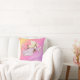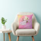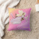 Uma fada de anjo mágica borrifa poeira de fada enquanto ela voa através de um travesseiro arco-íris. Tons brilhantes de pasta amarela, rosa, lavanda e roxo num gradiente diagonal. Perfeito para quartos de meninas e até creches! A fada de anjo tem cabelos castanhos longos e um vestido branco fluido com sombreamento de lavanda. Sua faixa rosa voa atrás dela na brisa. A fada está segurando uma bola branca de ouro de luz! Personalize para sua garotinha favorita!