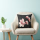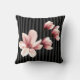 travesseiro decorativo de destaque de designer de chic feito em um padrão de listras pretas, com gráficos de um ramo bonito de uma magnólia borrão floresce. Personalize para adicionar qualquer texto que você queira neste travesseiro elegante.