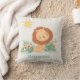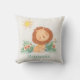 Este travesseiro bonitinho apresenta um adorável leão sentado entre folhas tropicais, samambaias e flores com o sol brilhando por cima. Você personaliza com o nome dos seus bebês abaixo do leão. Este seria um travesseiro tão adorável no berçário de bebês!