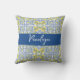 This chic pillow features a vibrant yellow lemon and blue tile pattern inspired by Mediterranean majolica. Perfect for adding a fresh, Italian coastal vibe to your home decor. Customizable with any name, it makes a thoughtful, personalized gift for those who love bright citrus accents.