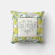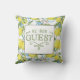 Travesseiro decorativo colorido com um padrão de limão que diz: "Seja nosso convidado".