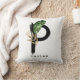 Letra personalizável P monograma com folha de palma tropical de cor aquosa, folha de folha de folha de ouro falso e sotaque de pincel de aquarelas pretas. Personalize este travesseiro de monograma tropical adicionando seu nome ou outros detalhes. Este travesseiro de monograma da letra P será perfeito como presente. Outras letras estão disponíveis.