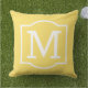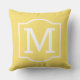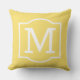 Na moda e travesseiro clássico de ênfase exterior quadrado apresenta uma inicial de monograma com uma simples estrutura decorativa de cor branca com cor de fundo amarelo brilhante. Personalize o plano de fundo para coordenar com a decoração exterior.