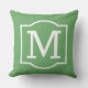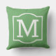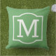 Na moda e travesseiro clássico de sotaque ao ar livre apresenta uma inicial de monograma com uma simples estrutura decorativa em branco com cor verde foliar de fundo foliar. Personalize o plano de fundo para coordenar com a decoração exterior.