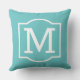 Na moda e travesseiro clássico de sotaque quadrado ao ar livre apresentam uma inicial de monograma com uma simples estrutura decorativa em cor branca com cor azul aqua / turquesa. Personalize o plano de fundo para coordenar com a decoração exterior.