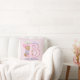 O travesseiro de infantário ou travesseiro de quarto de criança bonito tem um fundo cor-de-rosa pastel suave que você pode mudar para outra cor se clicar no botão personalizar e procurar à direita o link de edição pequena. A frente do travesseiro apresenta um adorável ursinho de pelúcia com balões de coração buquê e letra B de padrão de corações cor-de-rosa dizendo que B é para Belinda e está pronto para você mudar o nome do seu filho.
