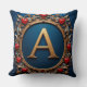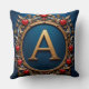 Uma representação artística da letra A, adornada com ouro, corações vermelhos e sotaques florais em um rico fundo azul, simbolizando elegância, romance e artesanato luxuoso.