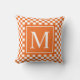 Travesseiro decorativo Monograma do Quadro de Verificação Laranja Personalizado, fácil de personalizar com seu nome inicial. Disponível em muitas cores na moda, modernas!