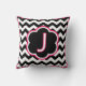Travesseiro decorativo da letra J. Monograma Bonito (solteiro inicial). Listras brancas e pretas (chevron), com detalhes brancos e fuchsia e solteiro inicial no centro. Nossos travesseiros decorativos vêm em três tamanhos: quadrado de 16" x 16", quadrado de 20" x 20", ou travesseiro lombar de 13" x 21" e algodão ou poliéster. Produzido por mães de solteiro que trabalham de forma sustentável nos EUA, sua compra personalizada de travesseiros contribui para quebrar o ciclo de pobreza para mães solteiros e seus filhos enquanto parece excelente em sua casa! De Scarebaby Design, apoiado pela garantia Zazzle.