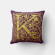Almofada Letra K Primeira Letra Faux Dourado e roxo