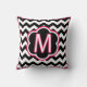 Travesseiro decorativo da letra M. monograma Bonito (solteiro inicial). Listras brancas e pretas (chevron), com detalhes brancos e fuchsia e solteiro inicial no centro. Nossos travesseiros decorativos vêm em três tamanhos: quadrado de 16" x 16", quadrado de 20" x 20", ou travesseiro lombar de 13" x 21" e algodão ou poliéster. Produzido por mães de solteiro que trabalham de forma sustentável nos EUA, sua compra personalizada de travesseiros contribui para quebrar o ciclo de pobreza para mães solteiros e seus filhos enquanto parece excelente em sua casa! De Scarebaby Design, apoiado pela garantia Zazzle.