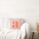Este travesseiro decorativo apresenta o seu monograma em coral sobre um fundo cor-de-rosa pastel em letras retrorreflectoras. ideia de presente de excelente!